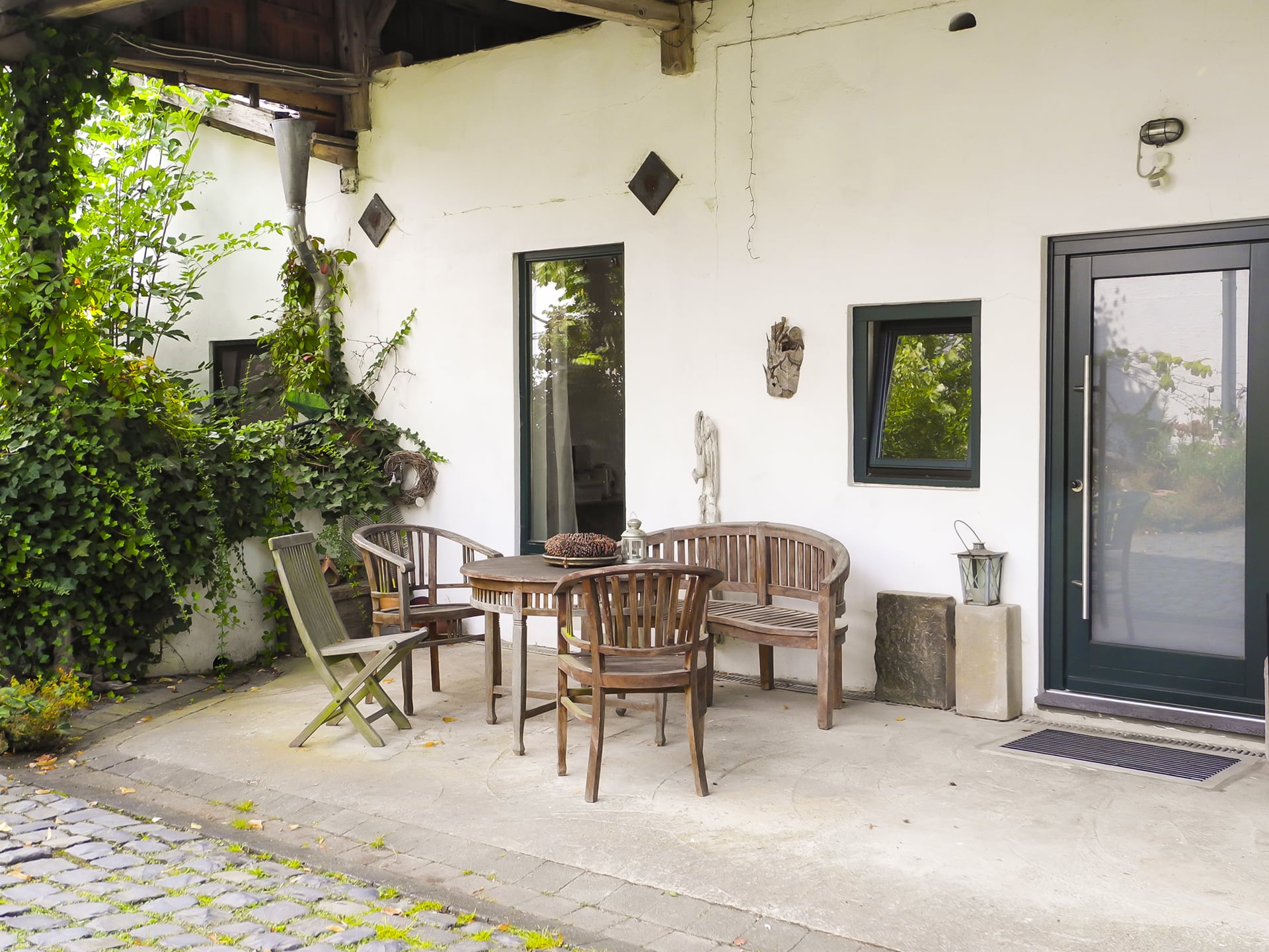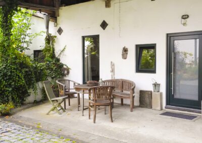 - Ein unbeheizter Werkraum für künstlerische oder handwerkliche Arbeit im Hofgebäude